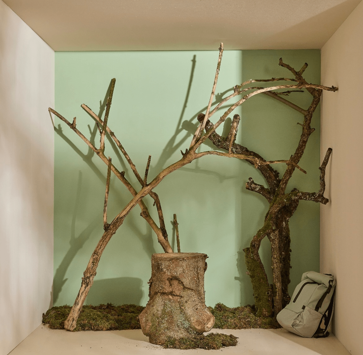 Lots de rondins, branches et troncs décoratifs.