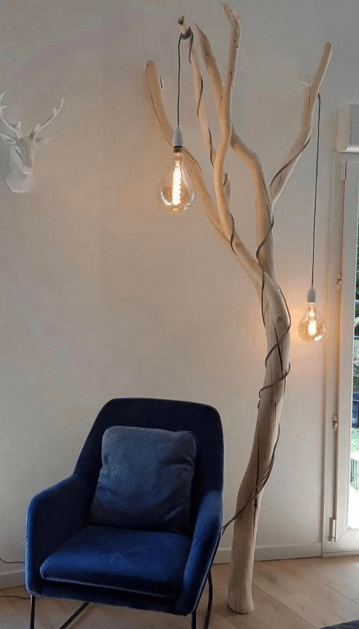 - Tronc d’arbre de bouleau faisant office de luminaire.